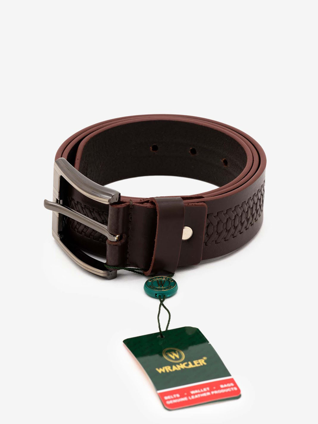 Stay stylishly casual with our cow embossed leather belt, featuring a sleek matte black pin buckle