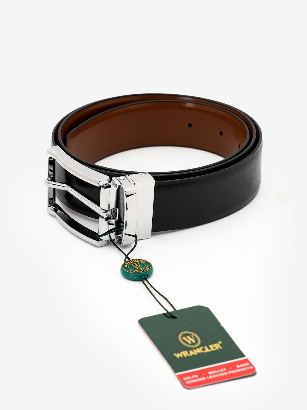 Reversible design in black and brown offers versatility